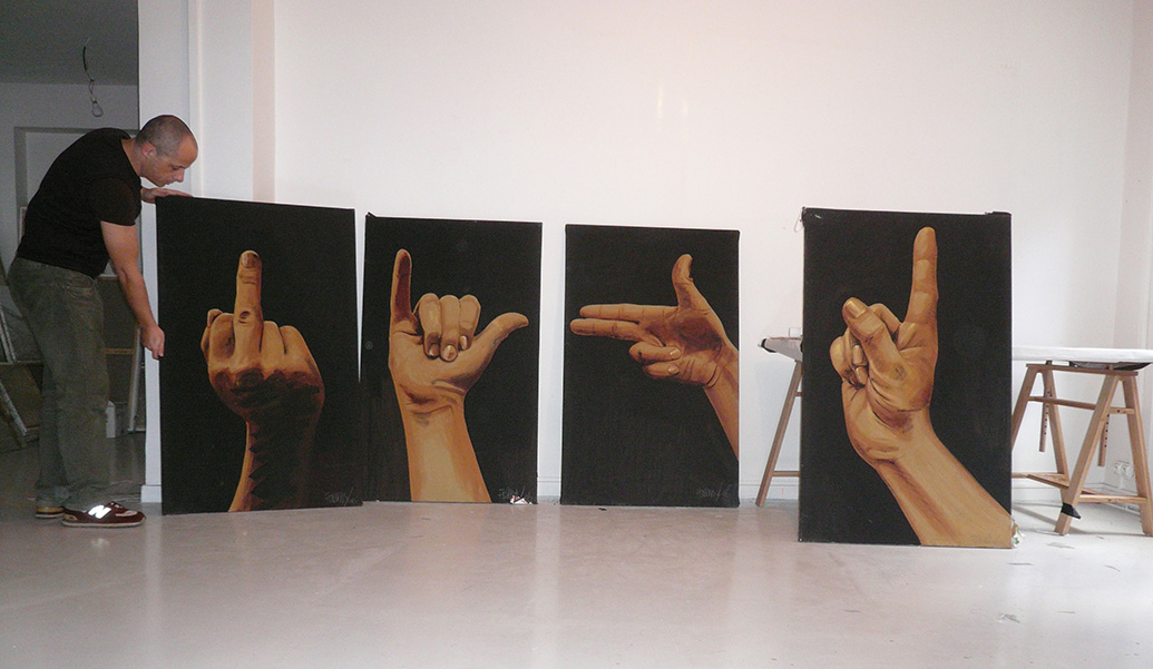These paintings are realistic portraits I made between 2004 and 2007, based on photographs I took of friends, family, a British bulldog and my own hands.