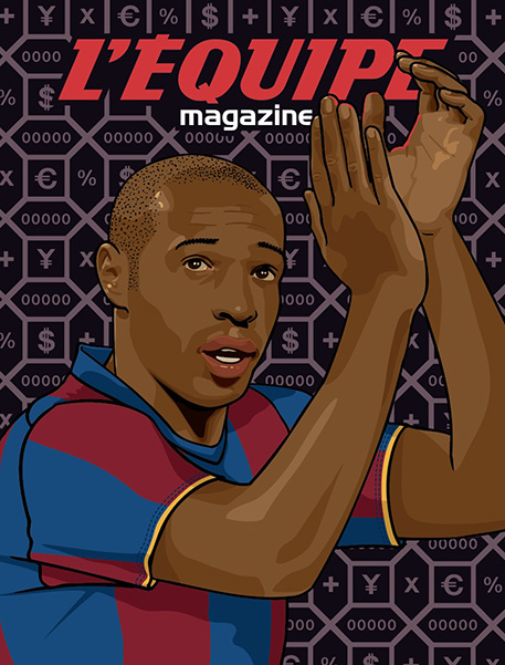 At the same time, I created a series of portraits for the French sports magazine L’Équipe, based on their photographs, which allowed me to portray some of my personal heroes, such as Thierry Henry and Diego Maradona.