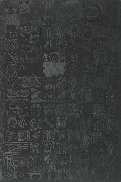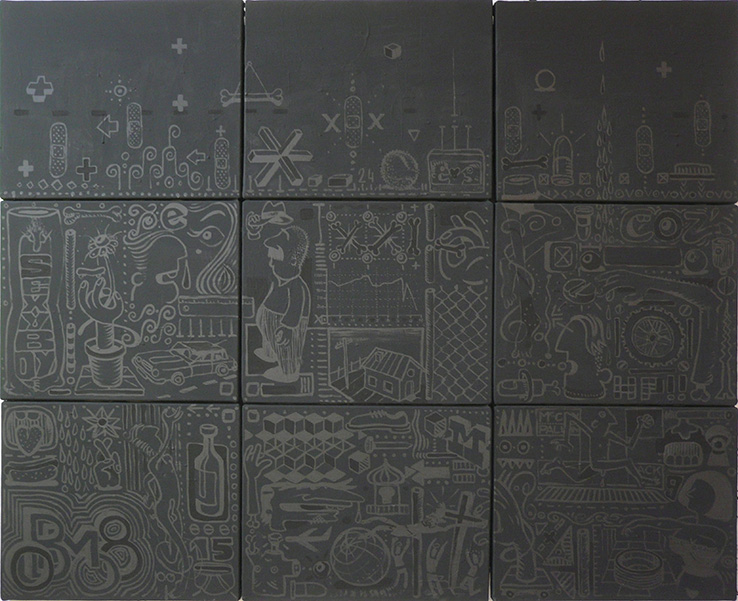 Back in the late ’80s, while working in an animation studio, I kept a lead sharpener with me. For no particular reason, I began collecting the graphite powder that gathered inside it. Years later, I discovered that by mixing it with varnish, I could create a uniquely luminous paint — and that’s how this series was born.